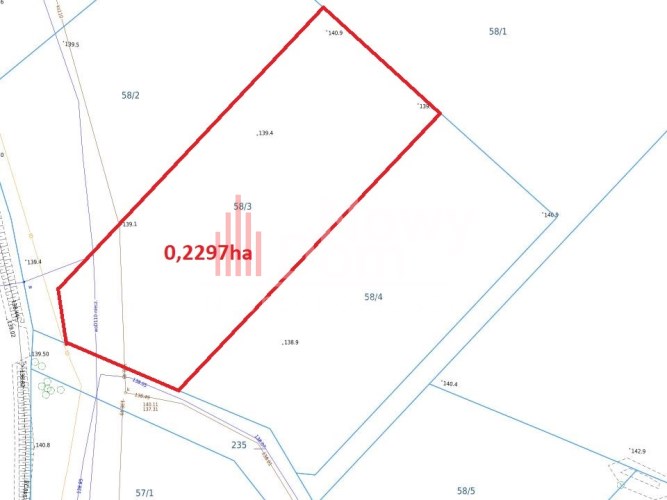 usytuowanie zabudowy: kalenicą budynku w przybliżeniu równolegle do linii rozgraniczającej z drogą gminną wewnętrzną o nr ewid. 235 lub prostopadle do linii rozgraniczającej z działką o nr ewid. 58/2,